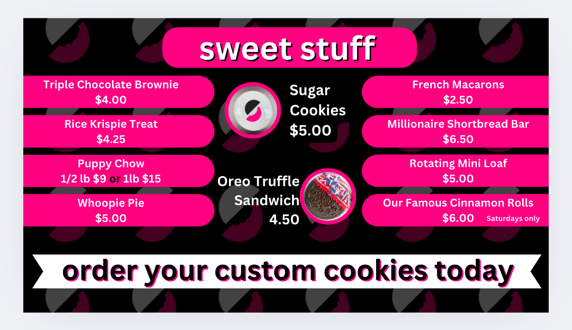 Sweetness Cookie Company Menu